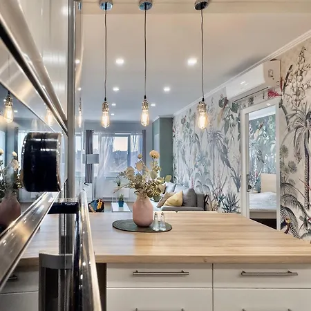 The apartment is nestled in the 07. Erzsebetvaros district, right near New York Palace. Located 250 m from the Hungarian theater "Madach Theatre", the 60 m² apartment is just a few steps from Blaha Lujza tér underground station. Central Blaha Haven City Center Modern apartment is situated about a 5-minute ride from the disturbing House of Terror Museum.